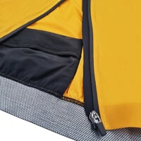 The windbreaker is ultra-light. The main material made of polyamide in a trendy color impresses with a weight of only 40 g/m2 and a water-repellent DWR treatment. Flexible and breathable panels on the sides and lower part of the sleeves ensure perfect ventilation and comfort. They are made of a soft, very pleasant to the touch, lightweight material, enriched with the technical component Graphene, which gives the material extraordinary strength, provides optimal heat transport, ideal thermoregulation, resistance to UV radiation, prevents the growth of bacteria and the formation of body odor.