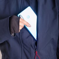 Lightweight women's softshell coat FLORENCE with a hood is made of highly breathable material. It can withstand wind and water up to 10,000 mm of water column without any problems, also thanks to water-resistant zippers. The coat has two main zip pockets and an easily accessible chest pocket. The jacket has a hood that can be folded into the collar and has an integrated drawstring at the hem. The sleeves can be easily adjusted with Velcro. An inner cuff with a thumb hole is sewn at the end of the sleeve and reflective elements are integrated on the inner hem of the sleeve.
