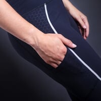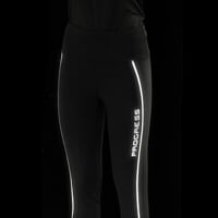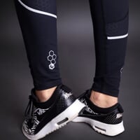 The UNIA women's running leggings are made of breathable, quick-drying, finely combed material that holds its shape well and does not show through. The leggings adapt perfectly to the figure. They are sewn with flat seams, which together with the wider elasticated waistband ensures optimum wearing comfort. There is a sewn-in pocket at the waist to store small items, and a pocket for your mobile phone can be found on the right thigh. The leggings have reflective strips sewn into the seams along the entire length of the legs, which, together with other reflective elements, guarantee greater visibility and therefore greater safety even if you are running in low-light conditions.