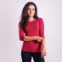Women's Bamboo T-shirt with 3/4 sleeves AKINA is made of bamboo fiber, which has natural antibacterial properties. In the heat, bamboo is naturally cool to the touch and this property is also maintained for the fabric properties. The looser, well-fitting cut and pleasant material ensure comfortable everyday wear in the city and on trips to the countryside.