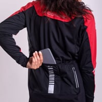 The FOLGARIA women's cycling jacket is ideal for female cyclists looking for maximum protection and comfort during their rides in colder weather. The softshell membrane ensures protection against the wind and allows moisture and excess heat to be vented. The jacket has an anatomical cut that is adapted to the body and at the same time ensures freedom of movement. In bad weather, you will certainly appreciate the raised stand-up collar or the elastic hems that end the sleeves. The jacket is equipped with three classic pockets and one zipped pocket in the back area. The jacket has a sewn-in inner vest that can be closed with a zip. The vest not only provides greater thermal comfort, but also keeps the jacket in place if you want to keep the main zipper open while riding. Of course, there are reflective elements for greater safety in difficult light conditions.